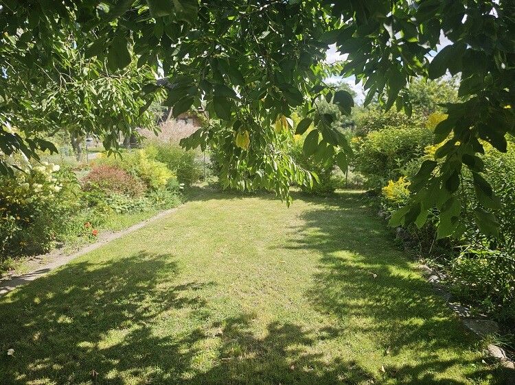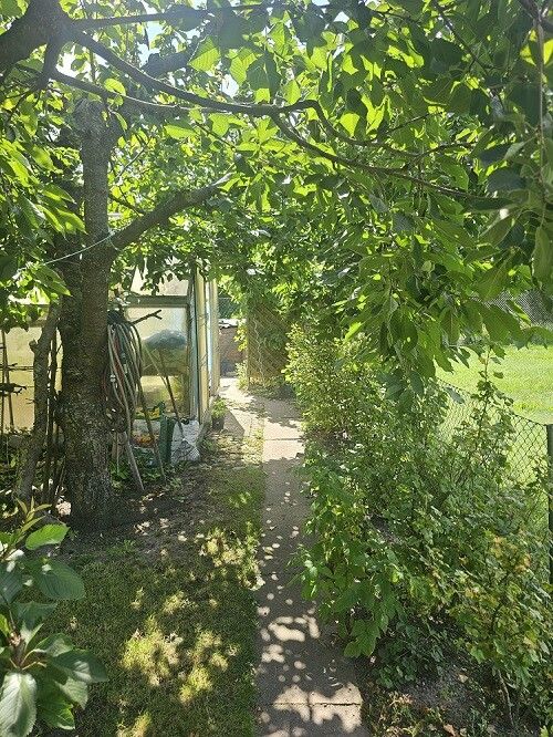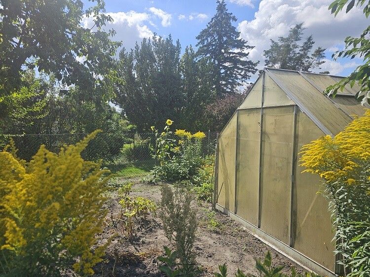 Das Grundstück ist mit einer kleinen Laube ausgestattet, die sich ideal als Rückzugsort oder zur Gartennutzung eignet. Zahlreiche Obstbäume verleihen dem Areal nicht nur natürlichen Charme, sondern bieten auch die Möglichkeit zur Ernte frischer Früchte direkt vor der Haustür. Das Vorhandensein eines Gewächshauses eröffnet zusätzliche Optionen für botanische Aktivitäten.